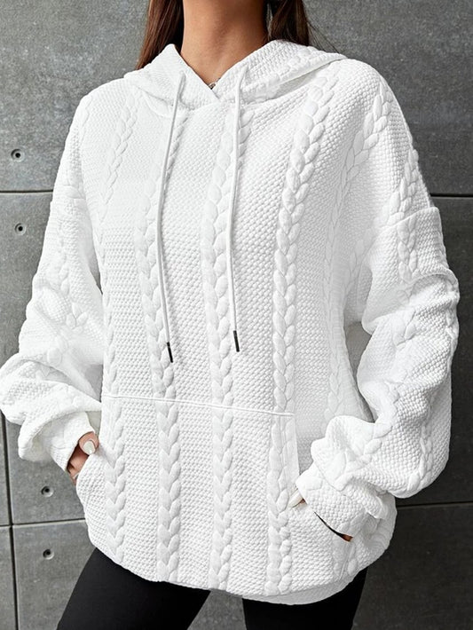 Lässiger, lockerer, schlichter Kapuzenpullover mit langen Ärmeln QAL7