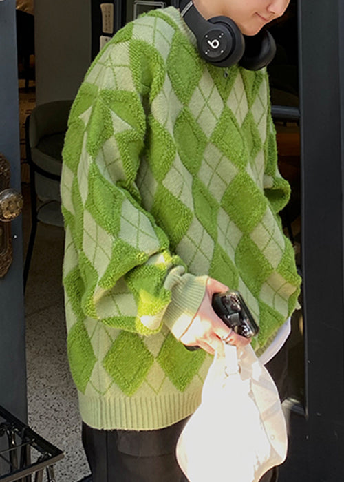 Blau kariert locker stricken Männer Pullover O Hals Fal QH025