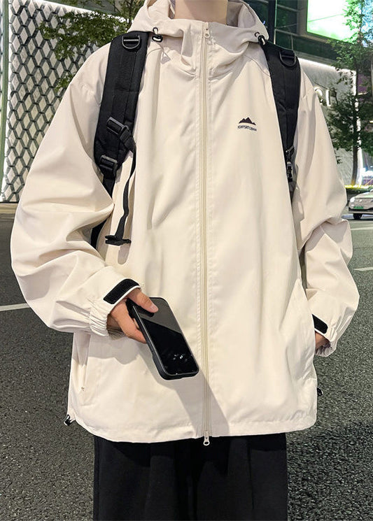 Frühling Kaffee Baumwolle Kapuzenmäntel Kordelzug Reißverschluss Herren