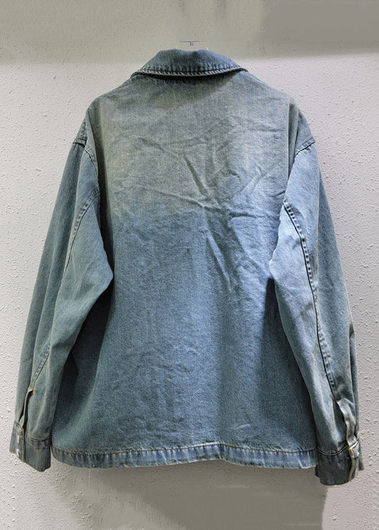 Denim Peter Pan Frühlingsmantel Neu Knopfkragen Schleife Blau