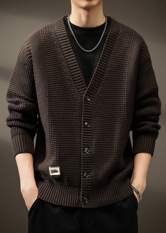 Männer Solide Taste Frühling Hals Neue Kaffee Strickjacken