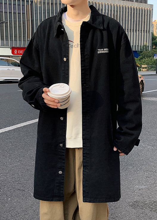 Einfache Schwarz Peter Pan Kragen Solide Baumwolle Herren Mäntel Frühling YQ010