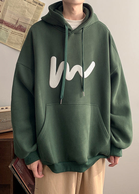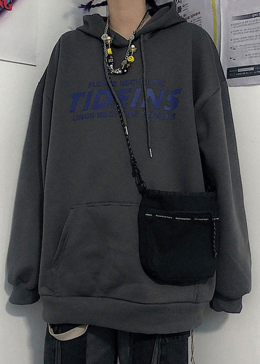 Lose Hellgraue Kapuzen-Sweatshirts mit Schnürung und Print, warmes Fleece, für Herren, Frühling, YQ034