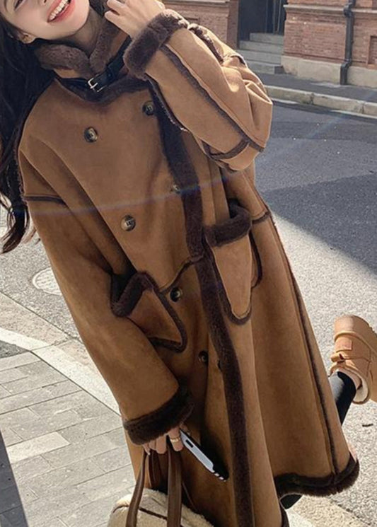 Boutique Khaki Taschen Patchwork Faux Wildleder Fleece Wolle Gefüttert Mantel Winter YY008