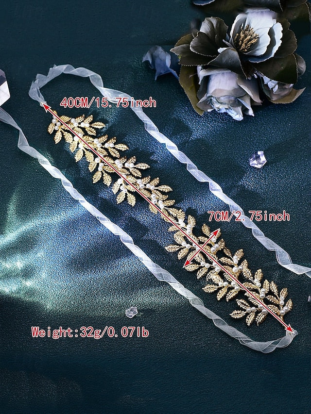 Accents Elegant Leaf with Pearl Bridal Gold Belt –