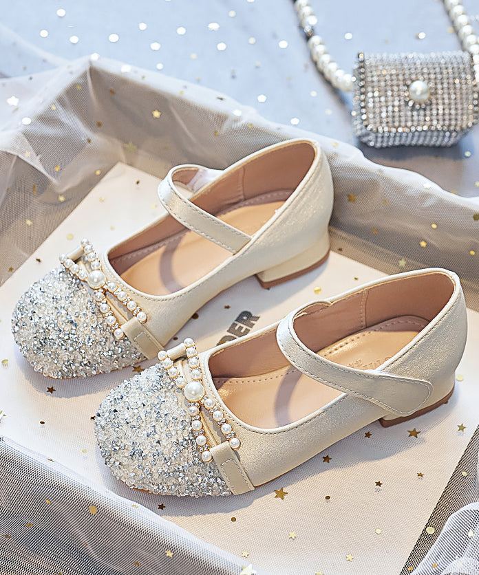 Perle Nagel Flache Rosa Schnalle Baby Zirkon Faux Schuhe Mädchen Leder
