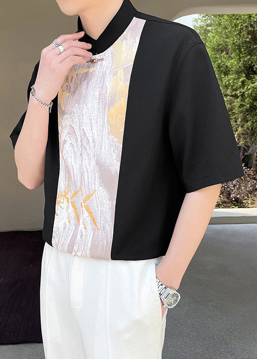 Schickes beiges Stehkragen Patchwork Herren T-Shirt Halbarm