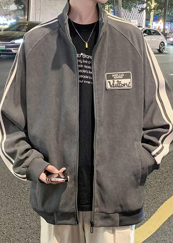 Neu Schwarz Zip Up Striped Baumwolle Männer Mantel