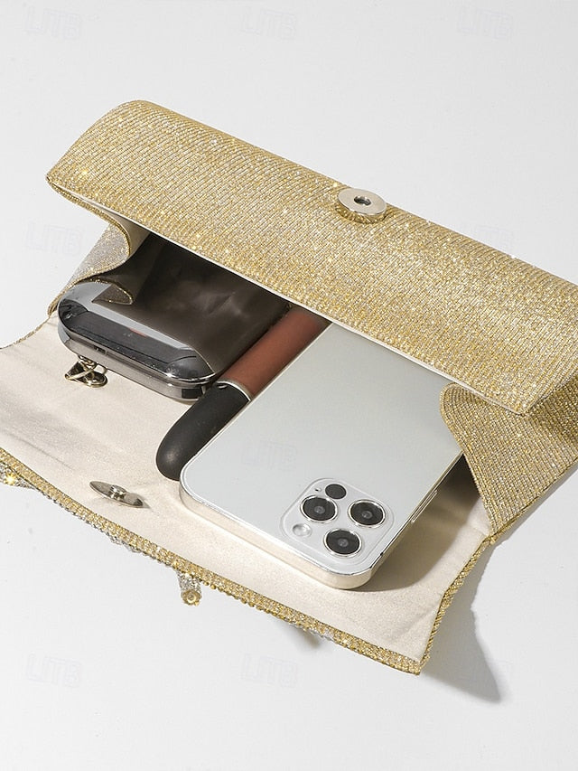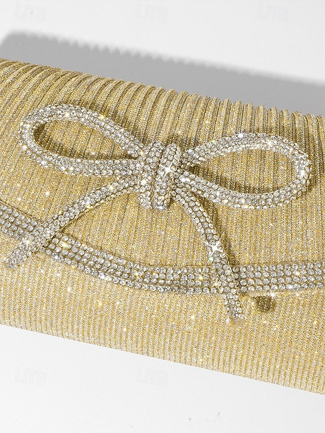 Gender:                                            Women's,                                                                        Type:                                            Shoulder Bags,                        Evening Bag,                                                                        Material:                                            Polyester,                                                                        Embellishment:                                            Rhinestone,                        Bowknot,                                                                        Pattern:                                            Solid Color,                                                                        Occasion:                                            Wedding Party,                        Party,                                                                        Width (cm):                                            5,                                                                        Height (cm):                                            10,                                                                        Length (cm):                                            22,                                                                        Function:                                            Large Capacity,                        Multi Carry,                                                                        Category:                                            Clutch,