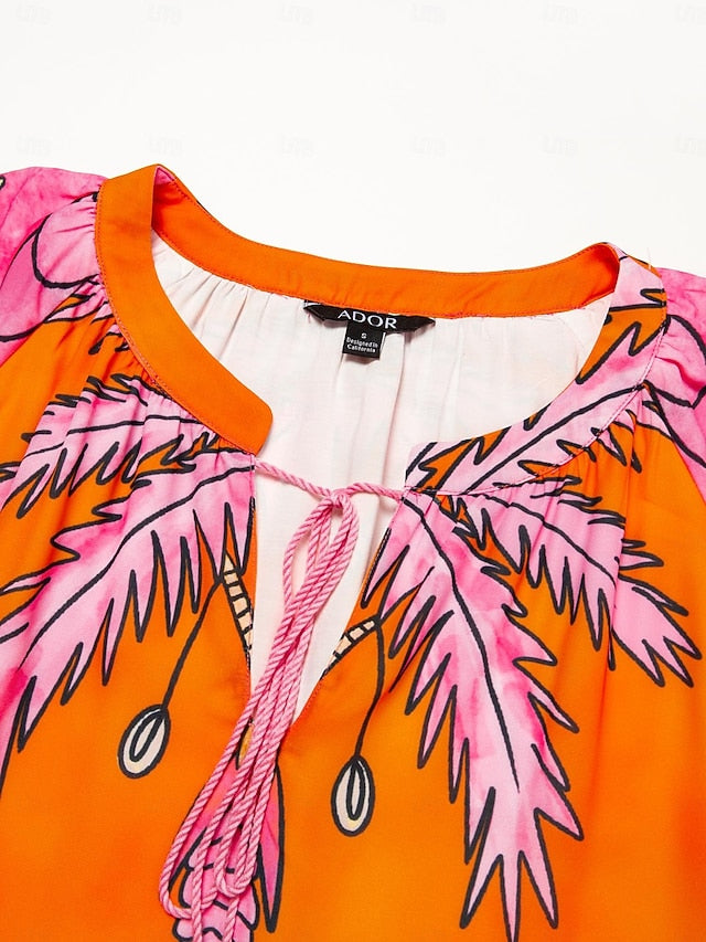 Dresses Type: Hem Maxi, Fabric: Chiffon, Gender: Women's, Design: string, Occasion: Weekend, Vacation, Style: Dresses, Fabric Properties: WhisperFlow Chiffon - Weightless and flowy, adding a hint of airy elegance to your look., Trends: Print, Neckline: V Neck, Sleeve Length: Half Sleeve, Sleeve Type: Puff Balloon Sleeve, Elasticity: Inelastic, Look After Me: Machine wash, Dress Length: Maxi, Pattern: Plants, Season: Summer, Looseness: Loose Fit,