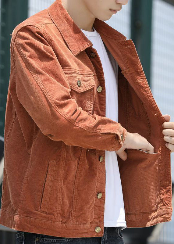 Edle Khaki Peter Pan Kragen Knopf Cord Herren Mäntel Frühling