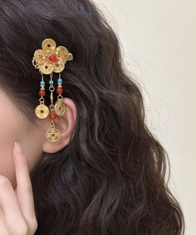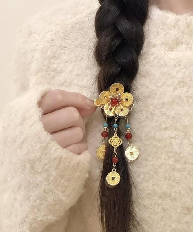 Stil Gold Sterling Silber Overgild Türkis Kupfer Münze Quaste Haarnadel