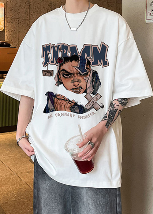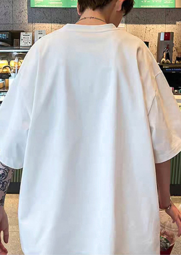 Baumwolle Herren Ärmel Hemd O Halb Loose Neck Schokolade Print T