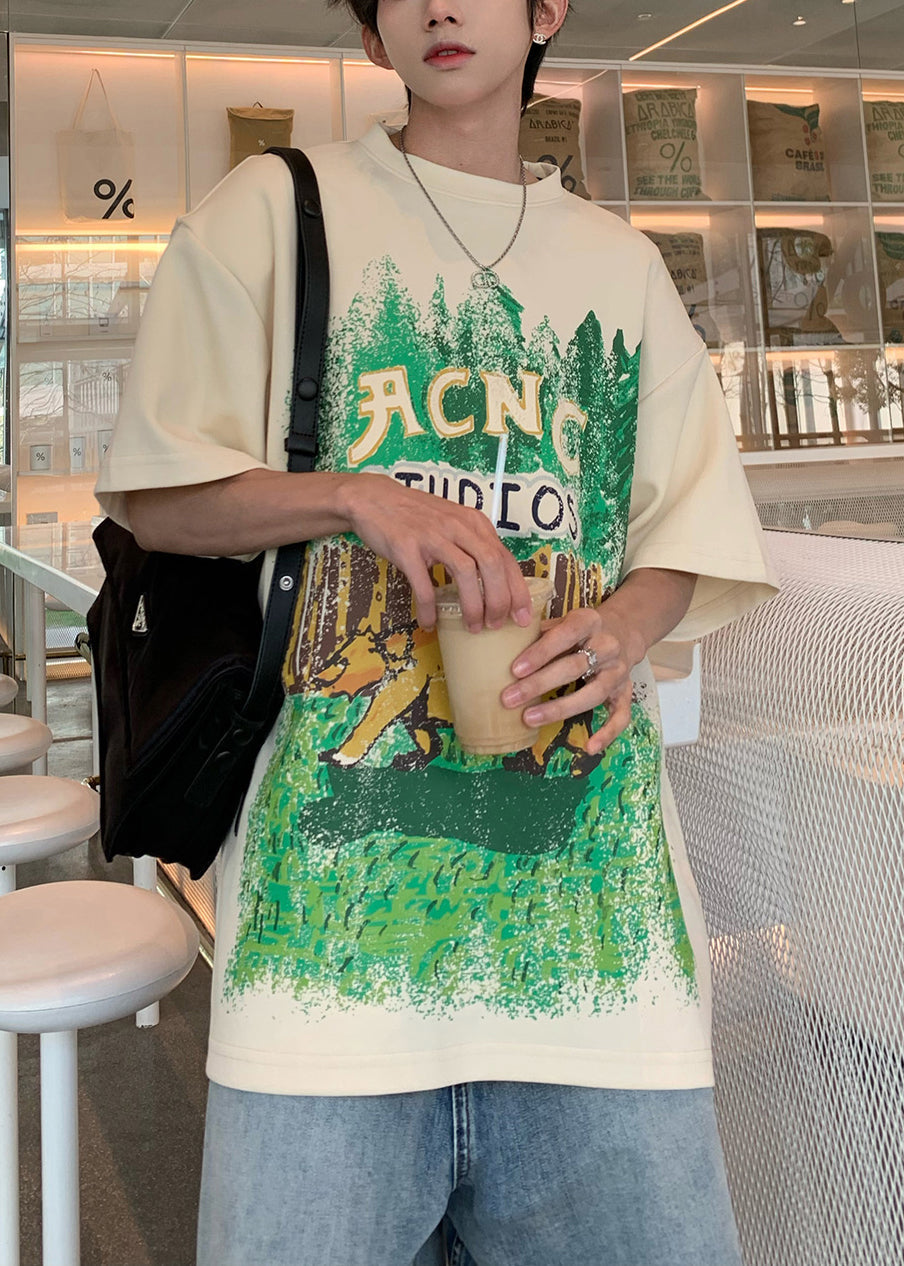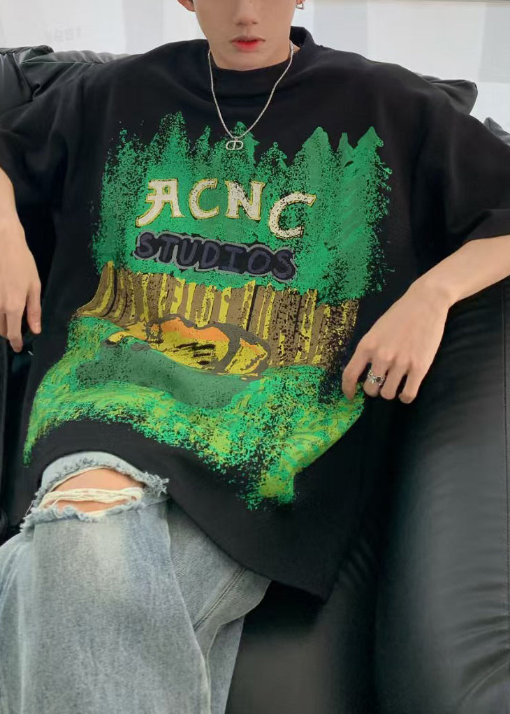 Baumwolle Ärmel Schwarz O-Ausschnitt Herren T-Shirt Print Halb Shirts Casual