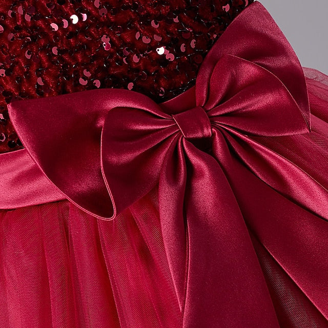 Gender: Girls', Age Group: Kids, Style: Sweet, Princess, Occasion: Festival, Party, Wedding, Kids Apparel: Dress, Fabric: Cotton, Polyester, Pattern: Sequin, Sleeve Length: Sleeveless, Design: Sequins, Bow, Age: 4-13 Years, Look After Me: Hand wash, Season: Summer, Elasticity: Inelastic, Dress Length (cm): Midi, Fit Type: Regular Fit, Dresses Type: Flower Girl's Dress,