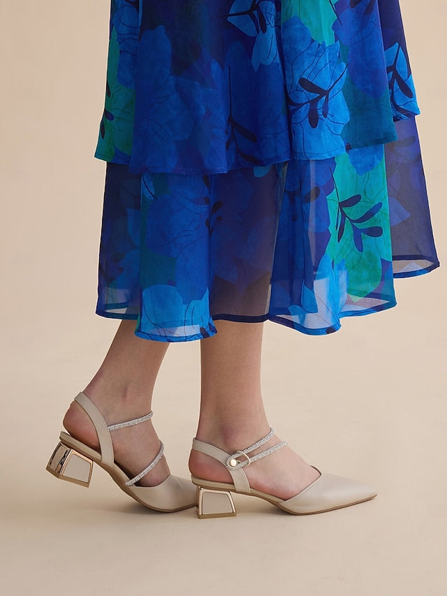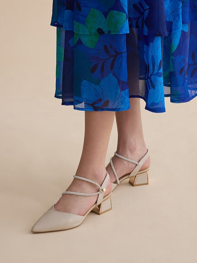 Elegant Pointed with Slingback Women's Heels Toe Rhinestone