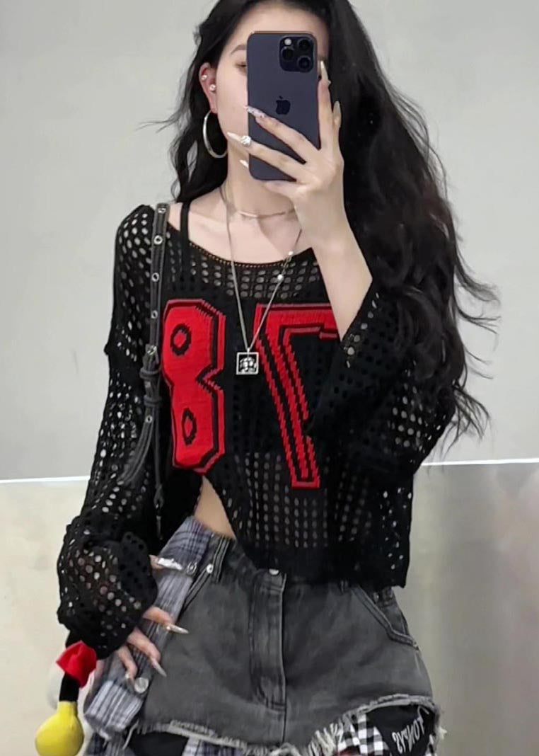 Gestickte Hohl Classy Sommer Tops Out Gelb Strick