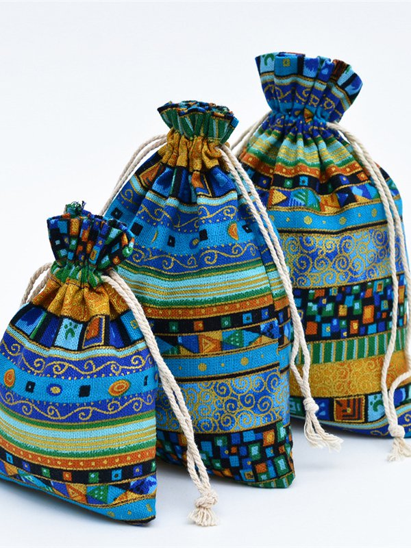Kordelzugbeutel aus Baumwolle und Leinen im ethnischen Stil AT10084