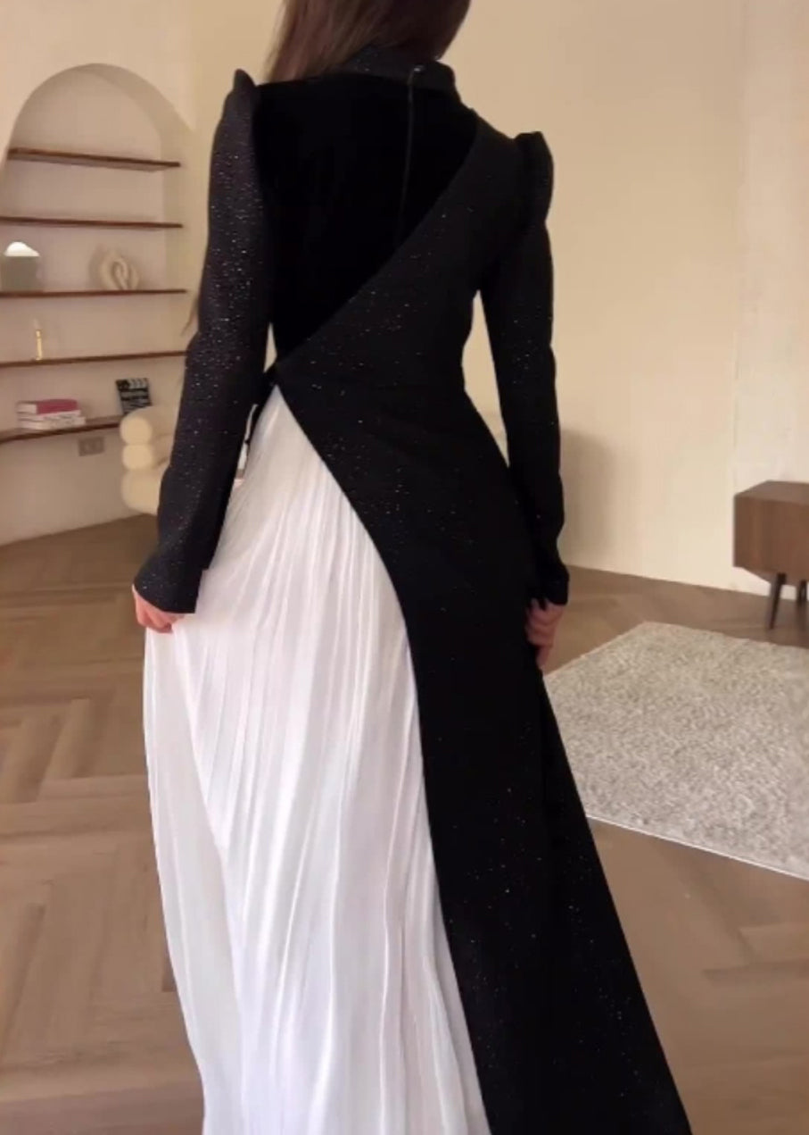 Dieses luxuriöse Kleid besticht durch elegantes Colorblocking, kunstvoll gearbeitetes Patchwork und eine einzigartige Faltenstruktur für einen anspruchsvollen und exklusiven Look. Die Illusion eines zweiteiligen Designs verleiht diesem zeitlosen Stück einen Hauch von High Fashion. Setzen Sie mit diesem Kleid ein Statement, perfekt für jeden gehobenen Anlass.