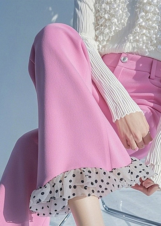 Neu Rosa Dot Hohe Taille Patchwork Flare Bottoms Frühling