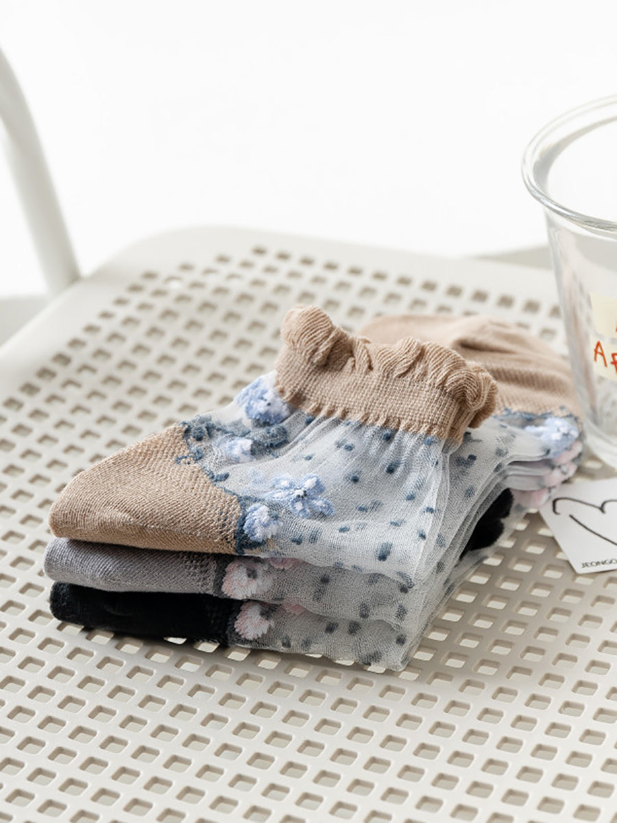 Blumenpaare Jacquard Artsy Spitzensocken Damen 3