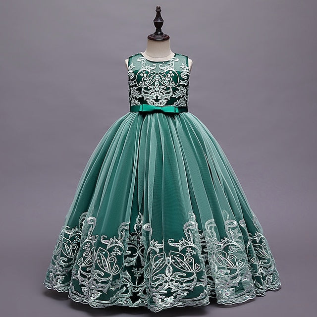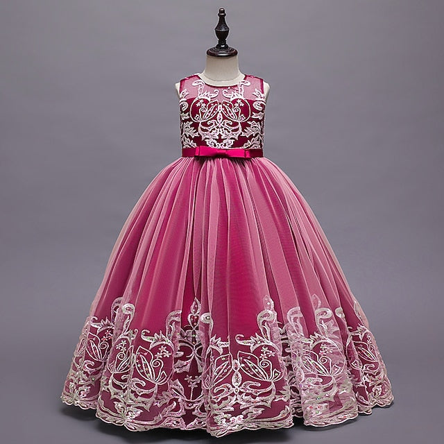 Gender: Girls', Age Group: Kids, Style: Princess, Occasion: Christening dress, Wedding, Kids Apparel: Dress, Fabric: Polyester, Pattern: Flower, Sleeve Length: Sleeveless, Age: 4-13 Years, Look After Me: Hand wash, Season: Summer, Elasticity: Inelastic, Dresses Type: Floral Embroidery Dress, Flower Girl's Dress, Neckline: Crew Neck,