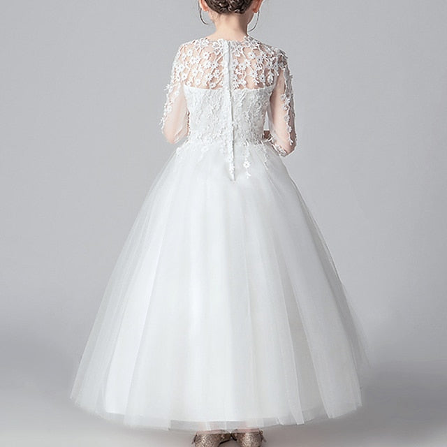 Gender: Girls', Age Group: Kids, Style: Beautiful, Adorable, Princess, Fashion, Occasion: Performance, Wedding, Party, Homecoming Dress, Kids Apparel: Dress, Party Dress, Flower Girl Dress, Fabric: Polyester, Pattern: Solid Color, Sleeve Length: 3/4 Length Sleeve, Design: Lace, Mesh, Age: 3-13 Years, Season: Summer, Spring, Look After Me: Hand wash, Elasticity: Micro-elastic, Fit Type: Regular Fit, Dresses Type: A Line Dress, Swing Dress, Tulle Dress, Party Dress, Lace Dress, Dress Length (cm): Maxi, SizeChart1_ID: 2:184008, Neckline: Crew Neck,