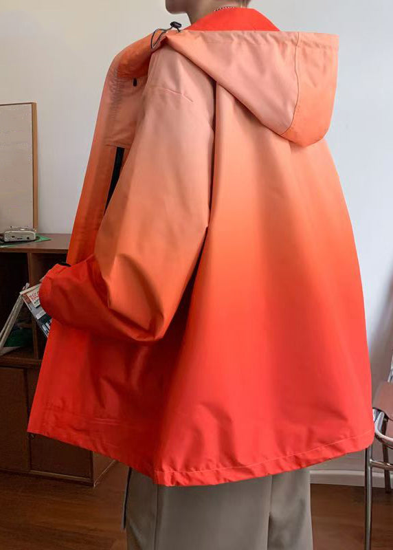 Lose Grau Farbverlauf Mit Kapuze Reißverschluss Baumwolle Herren Mäntel
