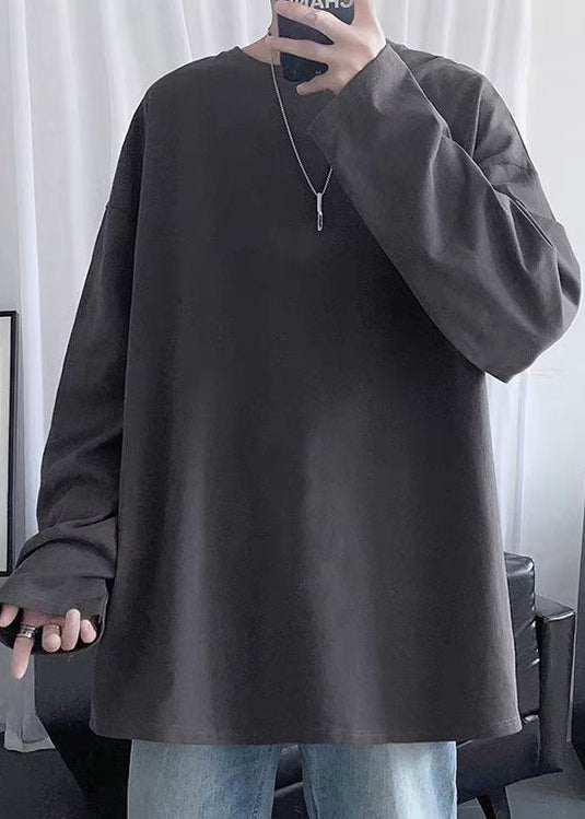 Einfache Dunkelgrau O Neck Solid Baumwolle Herren T Shirt Frühling