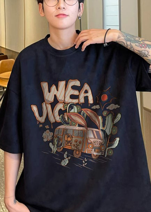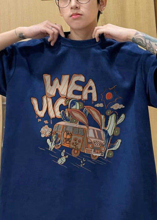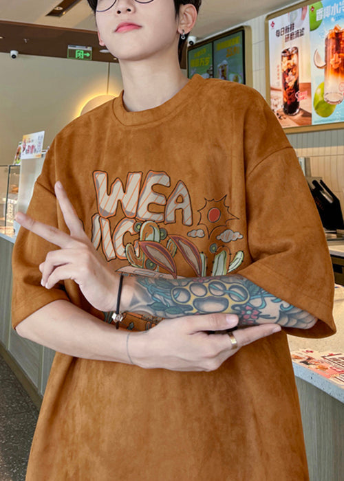 Vintage Army Green O Neck Print Faux Wildleder Herren T-Shirt Halbarm