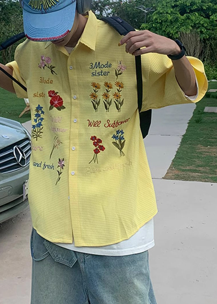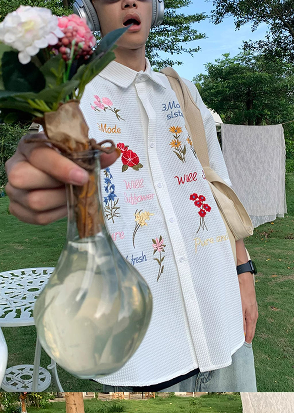 Handgemachtes blau besticktes kariertes Baumwollhemd für Herren im Sommer