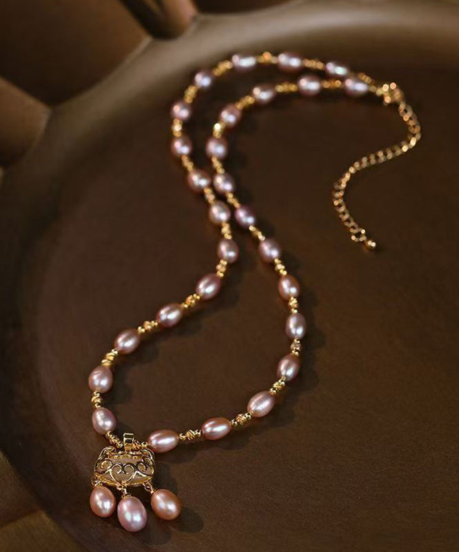 Modische Halskette mit Anhänger aus Sterlingsilber mit Perlen und Sicherheitsverschluss, Hellviolett