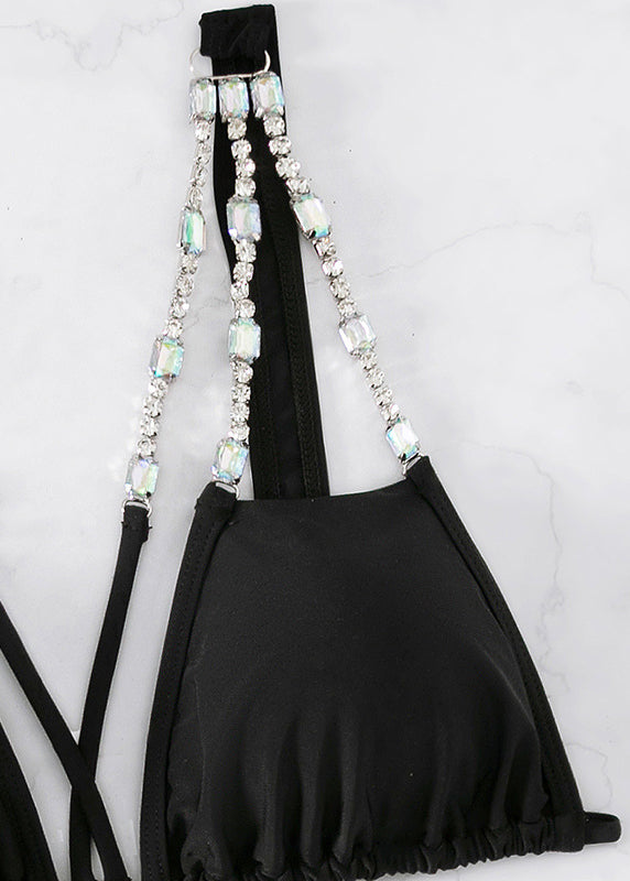 Lingerie Club Zirkonia Rückenfreies Set in Schwarz
