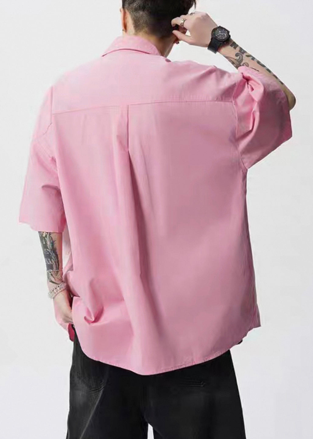 Stilvolle gelbe Peter Pan Kragen Print Button Baumwolle Herren Hemden Halbarm