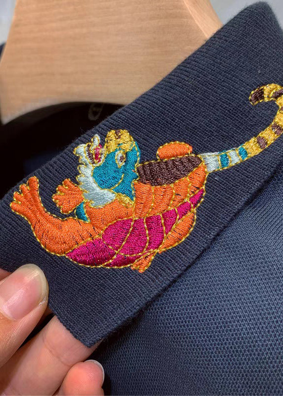 Edle Schwarze Tierknopf Baumwolle Herren Poloshirts Sommer