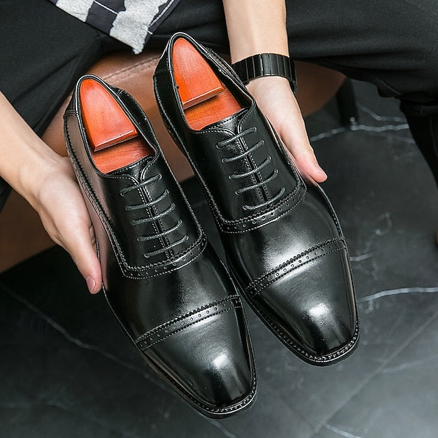 Men's Shoes Brogue Leather Faux Classic – Brown Oxford
