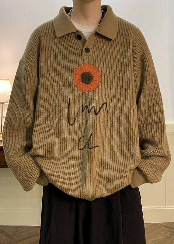 Neuer Kaffee Peter Pan Kragen Dicker Strick Herren Strickpullover Herbst EQ001