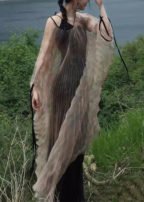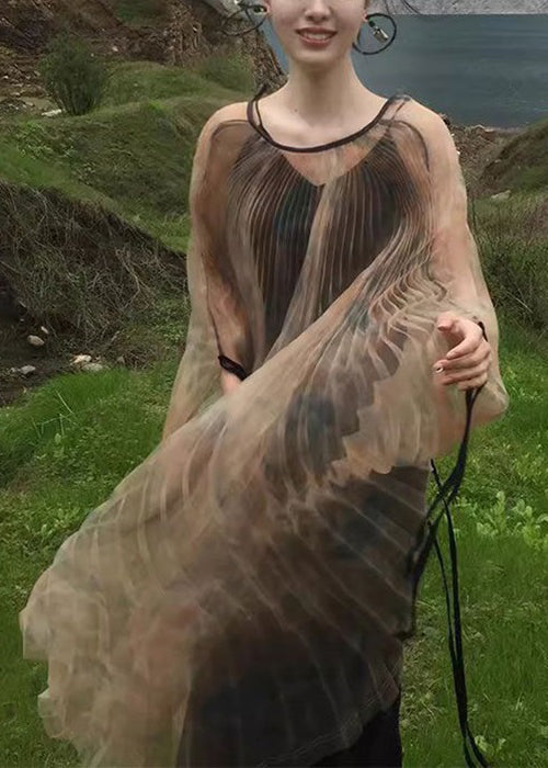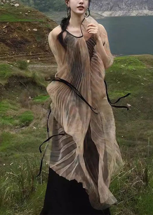 Werten Sie Ihre Garderobe mit unserem exquisiten zweiteiligen Set aus khakifarbenem, geknittertem Tüll mit Schnürung auf. Die langen Ärmel sorgen für zusätzliche Eleganz.
