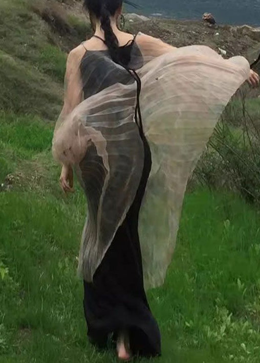 Neu Khaki Falten Tüll Schnürung Zweiteiler Langarm XX088