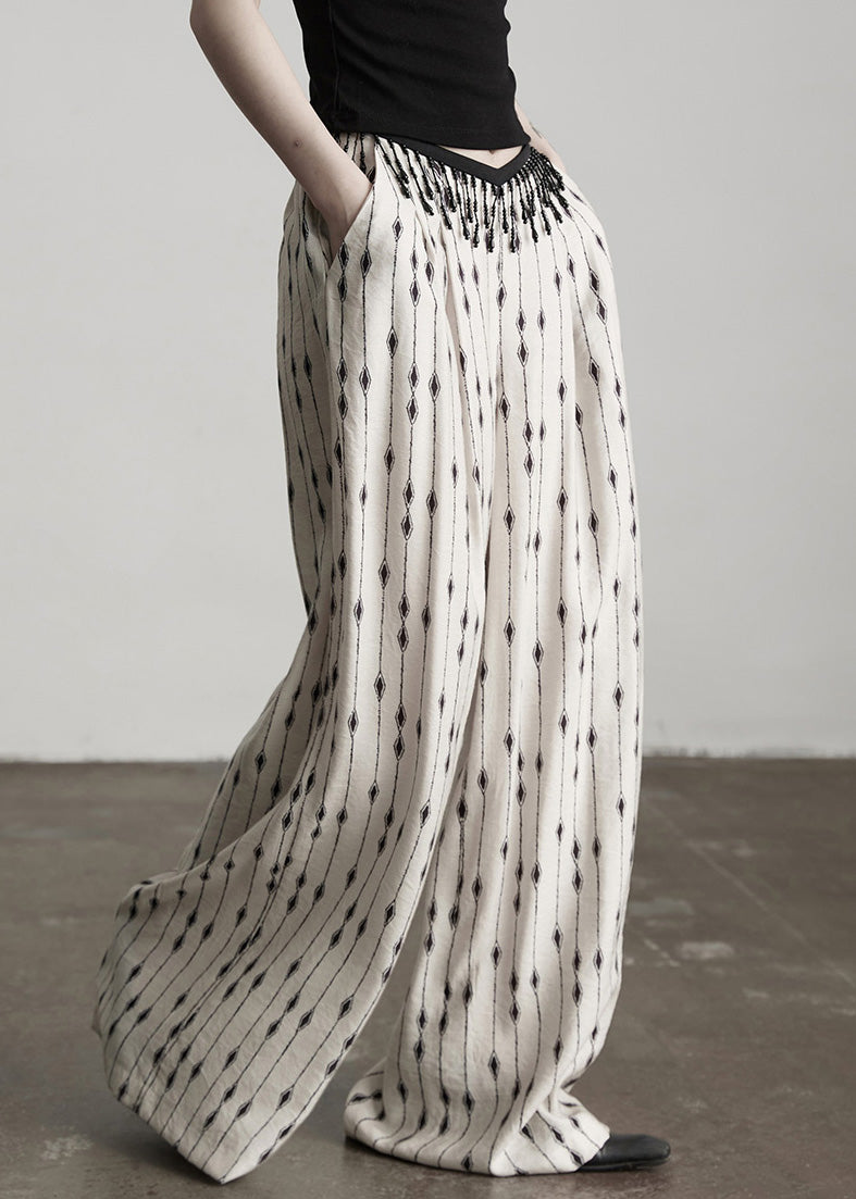 Pants Thin Pockets Original Print Design White Patchwork Cotton