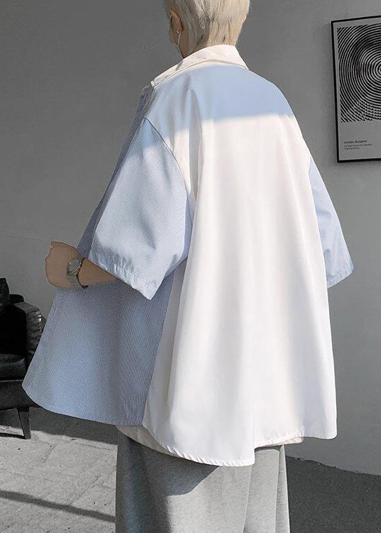 Neu Weiß Gestreiften Taste Taschen Patchwork Baumwolle Männer