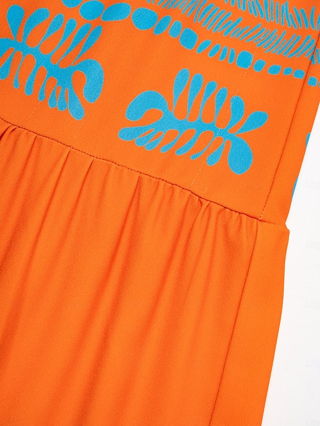 Plants Linear Button Up Crew Neck Ethnic Casual Maxi Dress