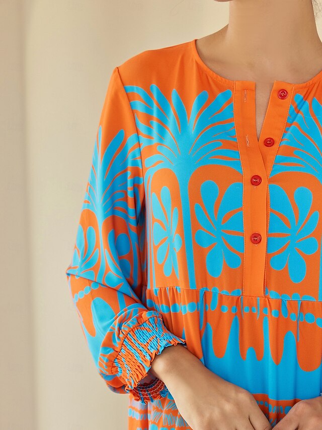 Dresses Type: Ethnic Dress, Casual Dress, Fabric: Polyester, Gender: Women's, Design: Button Up, Occasion: Casual Daily, Dailywear, Style: Ethnic, Casual Daily, Neckline: Crew Neck, Details: Smocking, Sleeve Length: Long Sleeve, Sleeve Type: Puff Balloon Sleeve, Elasticity: Inelastic, Look After Me: Machine wash, Dress Length: Maxi, Pattern: Plants, Linear, Season: Fall, Winter, Spring, Special selected products: Clearance, Looseness: Loose Fit,