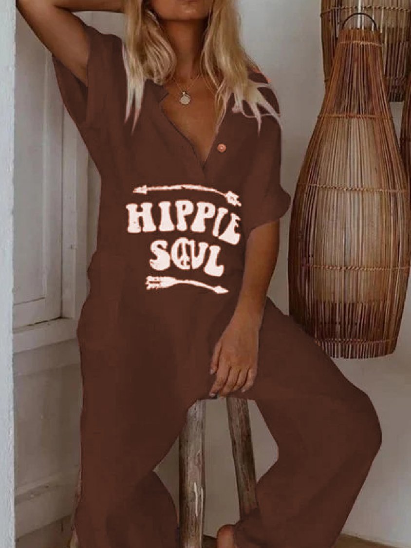Lässiger Jumpsuit mit kurzen Ärmeln und bedruckten Taschen AH138