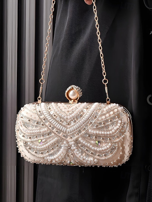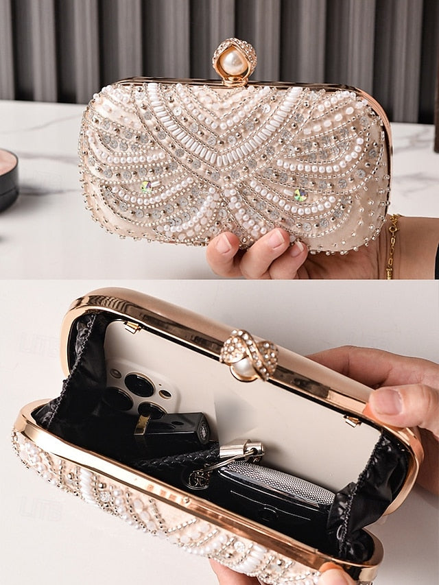 Gender: Women's, Type: Evening Bag, Shoulder Bags, Material: Gretel Materials, Embellishment: Crystals, Chain, Pattern: Solid Color, Detachable strap: Detachable, Adjustable strap: Non-Adjustable, Occasion: Party, Wedding Party, Width (cm): 19.5, Height (cm): 10, Length (cm): 5, Function: Multi Carry, Category: Evening Bag,