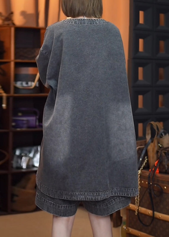 Retro Schwarz Patchwork Seite Offen Denim Tops Herbst
