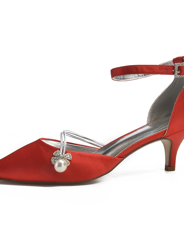 Women's Dark Blue Satin Kitten Heels with Pearl and