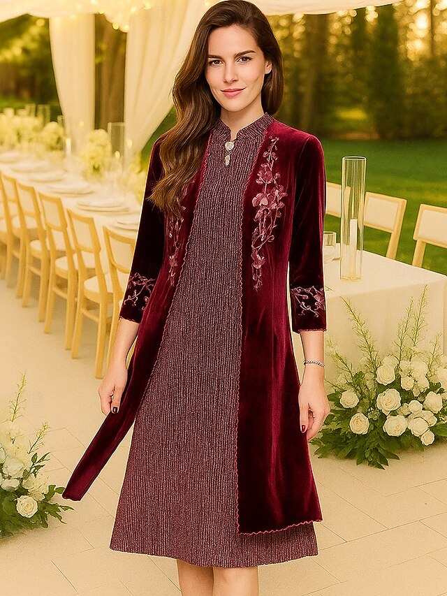 Occasion: Wedding Party, Formal Evening, Style: Luxurious, Elegant, Vintage, Silhouette: Sheath Column, Hemline / Train: Ankle Length, Neckline: High Neck, Closure: Zipper UP, Sleeve Length: Long Sleeve, Embellishment: Embroidery, Fully Lined: Yes, Tips: Accessories not included, Dresses Type: Party Dress, Cocktail Dress, Prom Dress, Wedding Guest Dress, Burgundy Dress, Gender: Female,