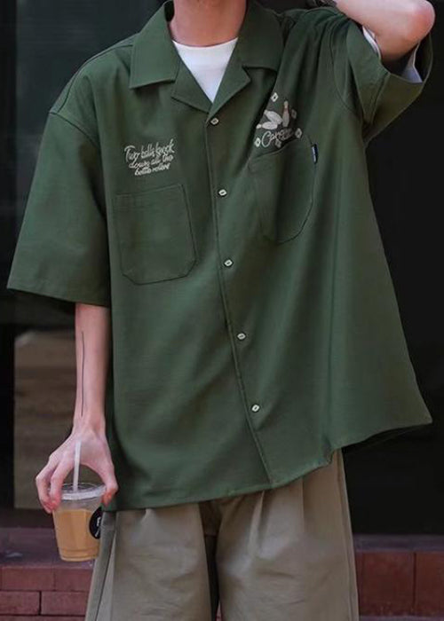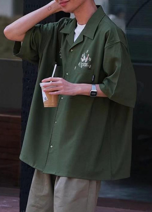 Lose Armee Grün Druck Taschen Ice Silk Männer Shirts Halbe