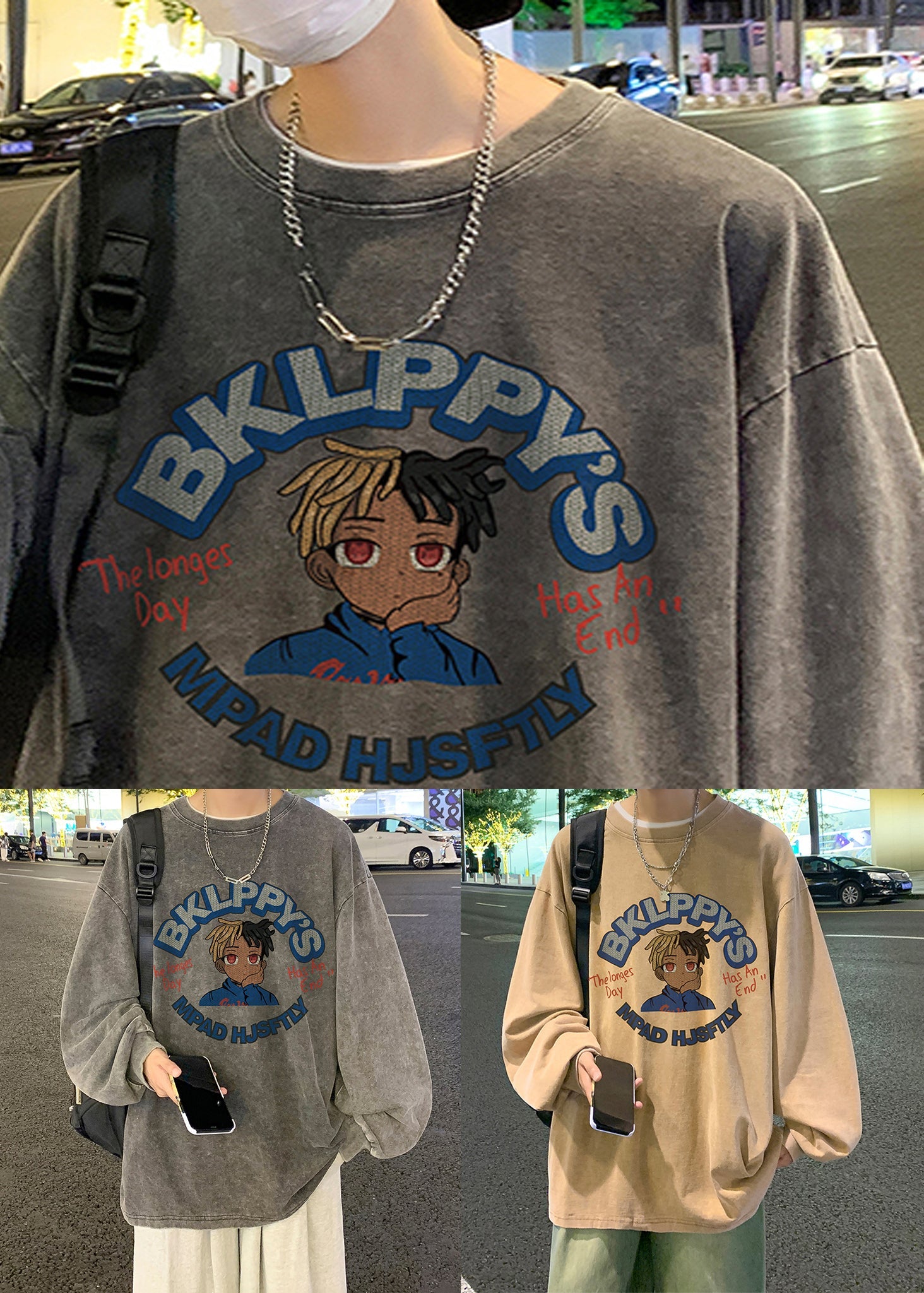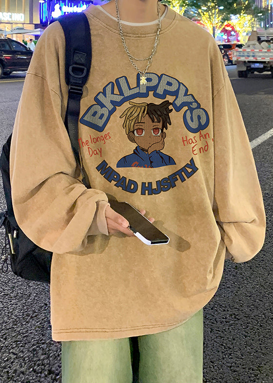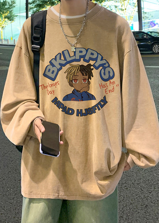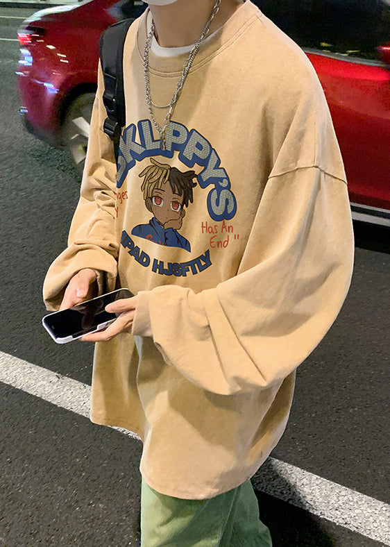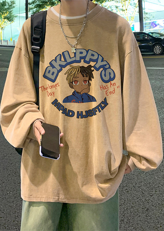 Khaki Print Lose Baumwolle Herren T Shirts O Neck Frühling